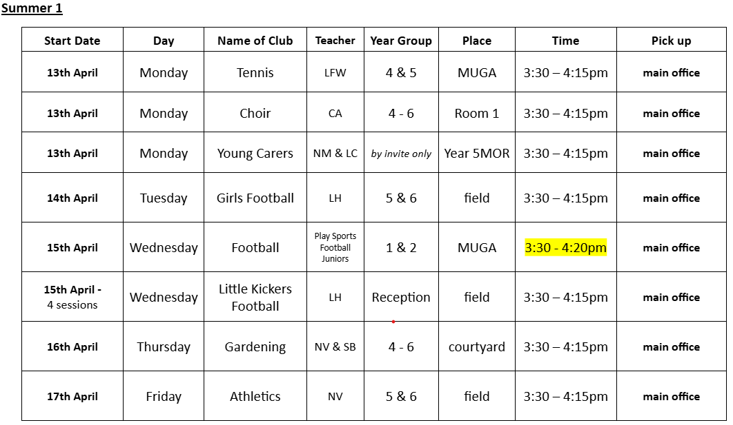 Activity Clubs - Summer Term 2026